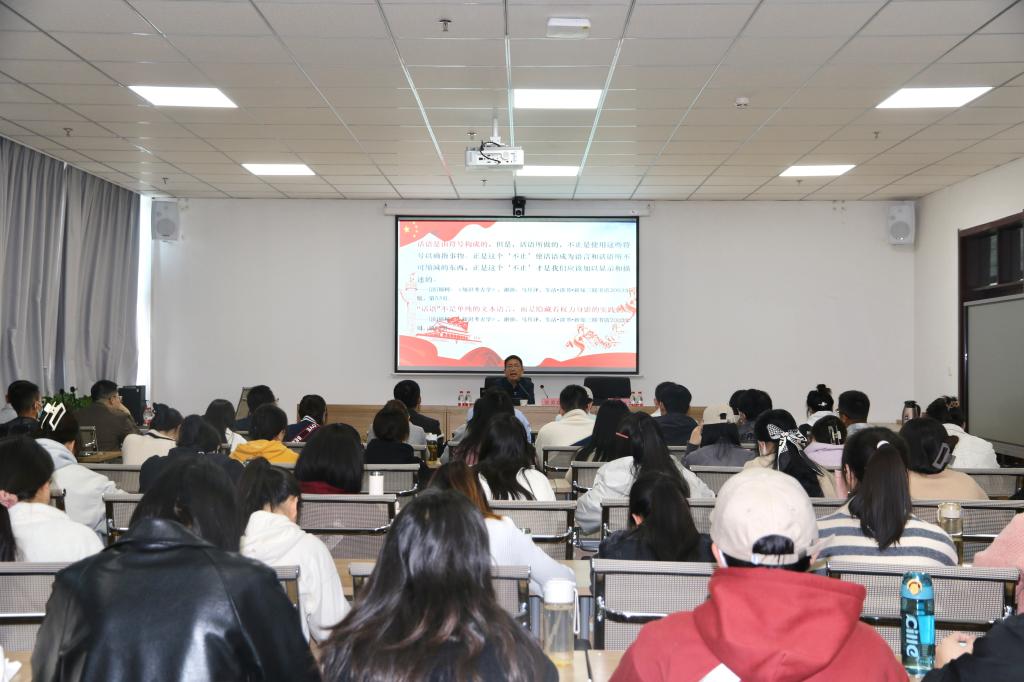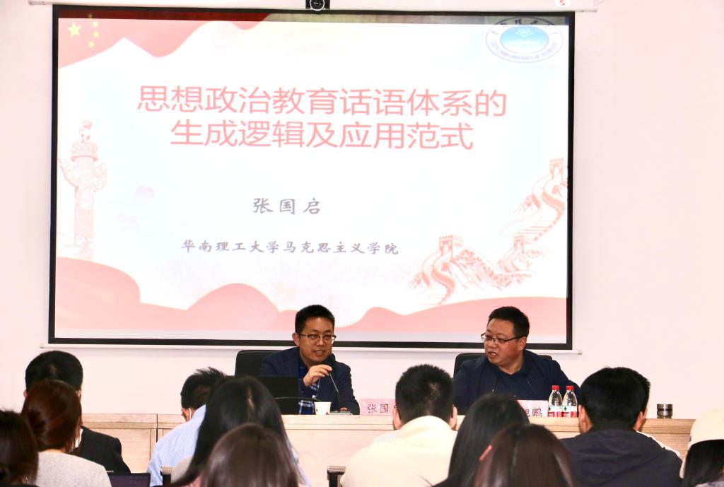 报告会上,张国启教授从思想政治教育的概念、范畴、话语与话语体系,思想政治教育话语体系的生成逻辑和思想政治教育话语体系的应用范式三个方面对思想政治教育话语体系的生成逻辑及应用范式进行了讲解。张国启教授认为,思想政治教育话语体系的应用范式建构关乎生命意义、生活质量和生态秩序,在一定程度上也构成了对人们进行价值引领的基本目标。思想政治教育话语体系的发展,不是为了建构抽象而又晦涩难懂的理论知识和话语体系,而是为了更好的关心人、教育人、引导人。我们要认识到思政课是落实立德树人根本任务的关键课程,办好思想政治理论课关键在教师。思政课教师要结合新时代特征对马克思主义话语体系的基本概念、基本范畴、基本话语进行深度阐发,使话语体系的转换成为进一步推进教育现代化的强有力的思想保障和精神支持。