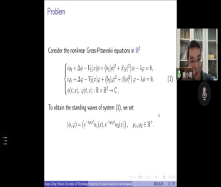 曾小雨简介:曾小雨,理学博士,武汉理工大学教授,2009年本科毕业于华中师范大学,2014年博士毕业于中科院武汉物理与数学研究所。研究方向为非线性泛函分析及椭圆型偏微分方程,主要从事与薛定谔方程以及玻色-爱因斯坦凝聚相关的变分问题研究。主持国家自然科学基金面上项目和青年科学基金项目,并作为核心成员参与国家自然科学基金重点项目。主要成果发表在Trans.AMS、JFA、Ann. Inst. H. Poincar'eAnal. Non Lin'eaire、Nolinearity、J. Differential Equations等国际期刊上。