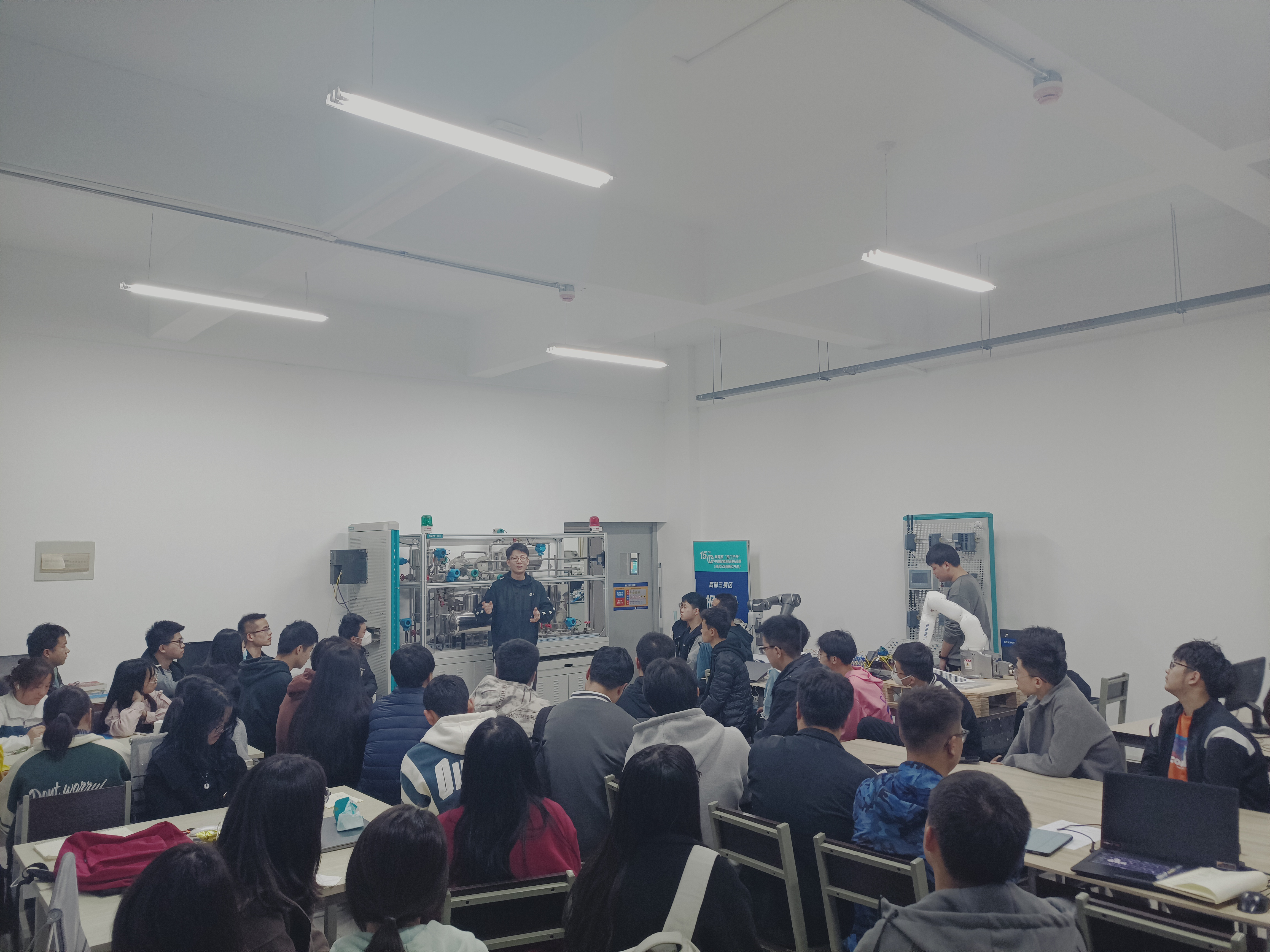 兰州理工大学Campus-Hub校园学习中心(以下简称HUB)举办了线下交流活动。HUB是受“西门子杯”中国智能制造挑战赛(以下简称挑战赛)组委会直接支持,以学生为中心建立,指导老师辅助,我校创新创业学院与电信学院协办的学习组织,成立至今获年度优秀工作单位4次(2016年、2019年、2020年、2022年,全国每年获得该荣誉的只有20所院校左右)。我校自2010年参赛以来获得挑战赛全国特、一、二、三等奖25项,分赛区奖110项,在全国院校中成绩突出。