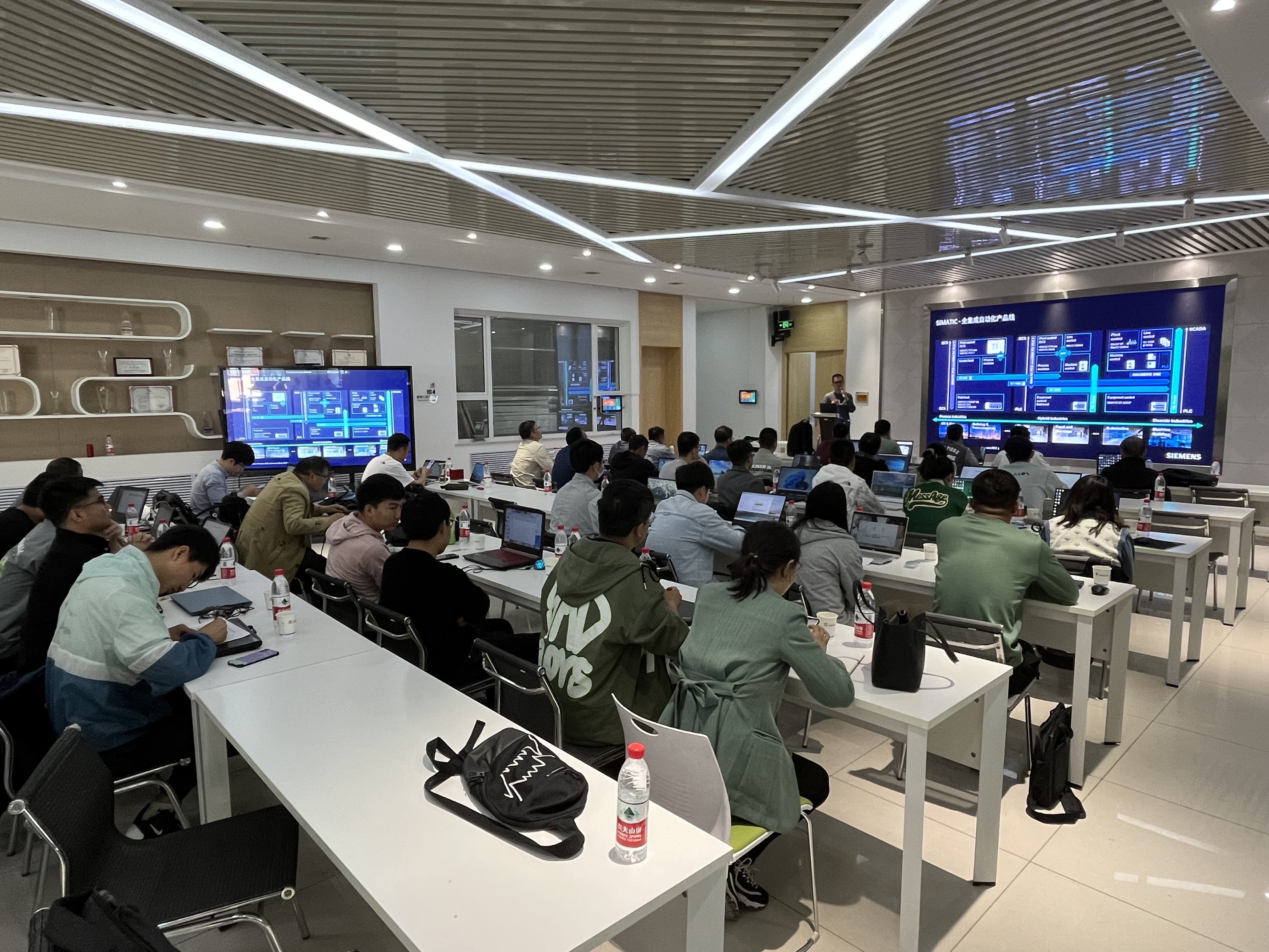 此次活动目的在用培训工程技术人员深入理解和应用西门子过程控制系统SIMATIC PCS 7,熟悉该软件在项目中更多的场景应用,从而更标准规范的使用其来编程组态服务项目,同时对融合OT/IT技术的新一代DCS系统PCS neo做应用演示,为打造甘肃省数字化创新应用新生态赋能。学习活动中,阙诚(西门子过程自动化竞争力中心高级工程师)和胡凌枫(西门子过程自动化竞争力中心工程师)为大家提供了虚拟机,同步讲授和演示SIMATIC PCS 7及SIMATIC PCS neo 涉及的系统硬件组态、系统网络组态、连续功能图 CFC、顺序功能图 SFC、高级过程控制库APL,及上位机组态示例和系统工程演示等内容。参加本次培训的过程自动化专家,有多位来自我校电信学院和相关学院。