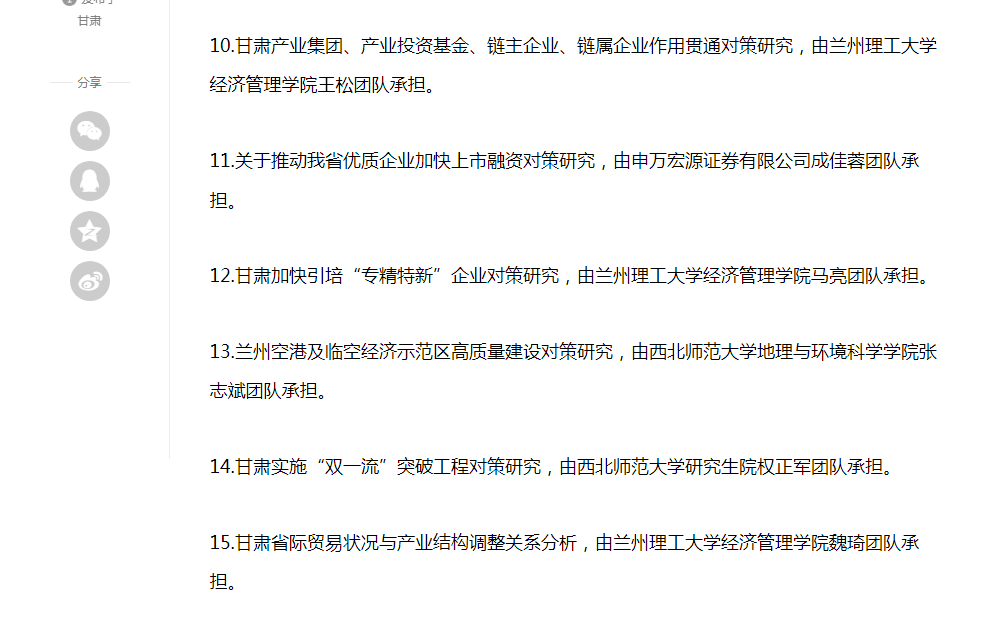 2023年4月24日,省政府决策咨询委员会办公室通过省政府网站公布了甘肃省人民政府决策咨询委员会2023年度研究课题公开招标结果,兰州理工大学经济管理学院三个团队喜获中标。