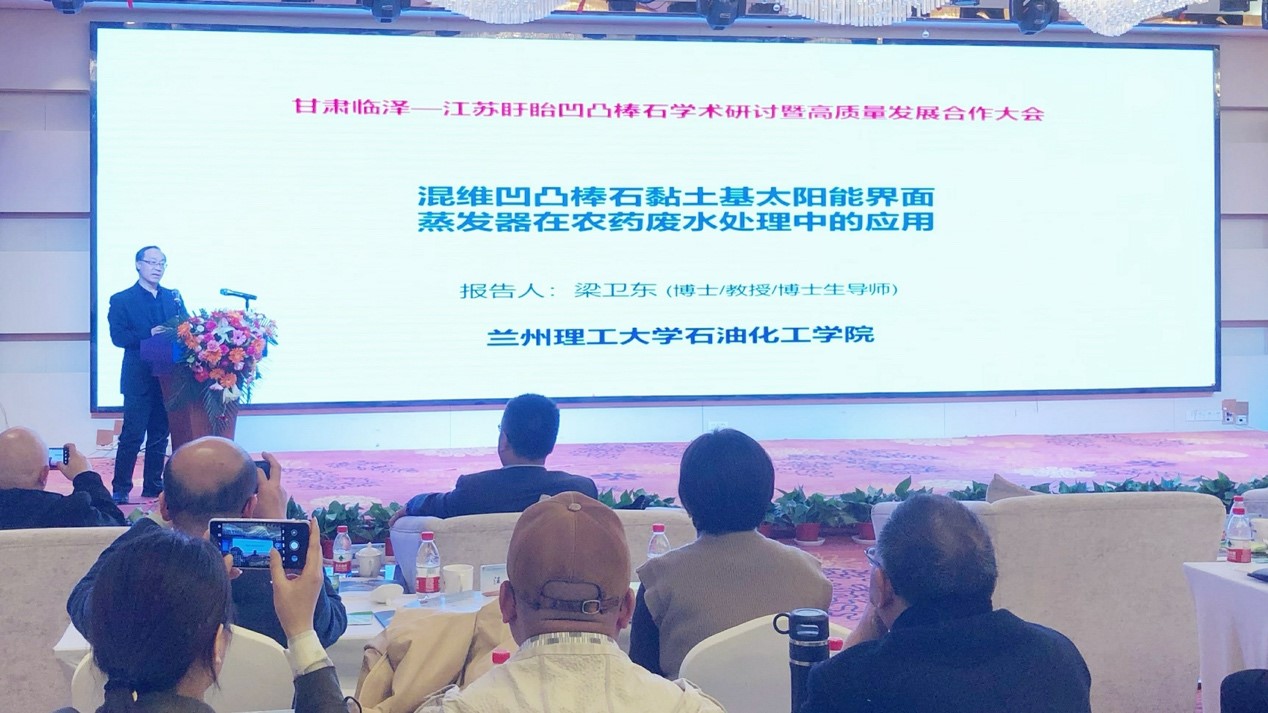 2023年4月22日,甘肃临泽-江苏盱眙凹凸棒石学术研讨暨产业高质量发展合作大会在张掖市临泽县举行,石油化工学院教授梁卫东带领2名研究生参会,并作题为“混维凹凸棒石黏土基太阳能界面蒸发器在农药废水处理中的应用”的大会专题报告。