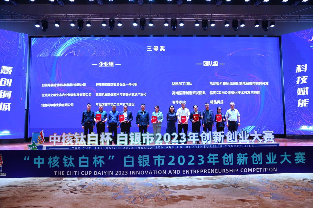 5月19日,“中核钛白杯”白银市2023年创新创业大赛决赛圆满落幕,白银新材料研究院申报并入围决赛的项目荣获三等奖。本届大赛由白银市科技局、市委组织部、市发改委、市工信局、市商务局、团市委和高新区管委会联合主办,白银科技企业孵化器、白银万达摩尔孵化器承办。