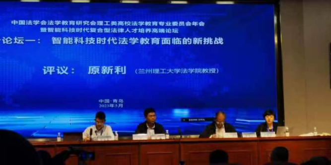 5月13日“中国法学会法学教育研究会理工类高校法学教育专业委员会年会暨智能科技时代复合型法律人才培养高端论坛”在青岛召开。我校法律硕士中心负责人原新利教授应邀出席会议并作为会议分论坛评议人进行点评。