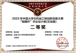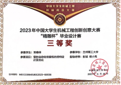 本次大赛兰州理工大学机电工程学院共提交参赛作品13件,经过区域赛(包含重庆、四川、贵州、云南、山西、陕西、甘肃、宁夏、青海、西藏、新疆等省区)评审,获得区域赛一等奖2项、二等奖2项、三等奖4项。获得区域赛一、二等奖的作品入围国赛决赛,我校邓森林同学的《管柱自动化排管机的结构设计及优化》,周博文同学的《基于仿生机械臂的磁流变抛光装置设计》,程自恒同学的《金属3D打印机清粉设备设计与研究》,张丛丛同学的《无油三涡圈涡旋压缩机结构设计与优化》4件作品在决赛中分别获得三等奖和佳作奖。