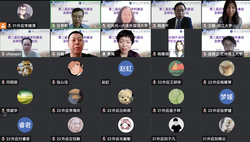 6月10日,兰州理工大学外国语学院主办的“第二届红柳外语学科建设及研究生学术论坛”在线上举行。本次学术论坛邀请了8位知名专家做主旨发言,学院师生共220余人参加活动。
