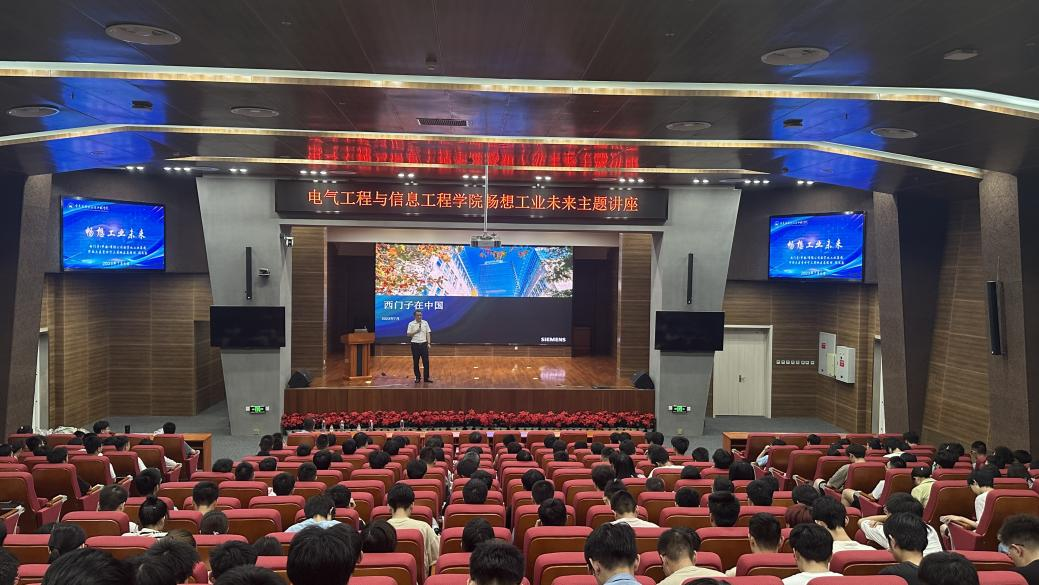 7月6日,电信学院在彭家坪校区图书馆106报告厅举办“畅想工业未来”主题讲座。邀请西门子(中国)有限公司数字化工业集团华西大区青甘宁三省地区总经理闫文忠、西门子(中国)有限公司数字化工业集团青甘宁区域兰州办事处高级经理王建龙开展讲座,学院陈伟院长及学院200余名学生参加了本次会议。会议由学院党委副书记刘炜主持。会议伊始,学院院长陈伟教授代表学院为校外兼职硕士研究生导师闫文忠、王建龙颁发聘书。随后闫文忠向同学们作了题为“畅谈工业未来”的主题讲座。