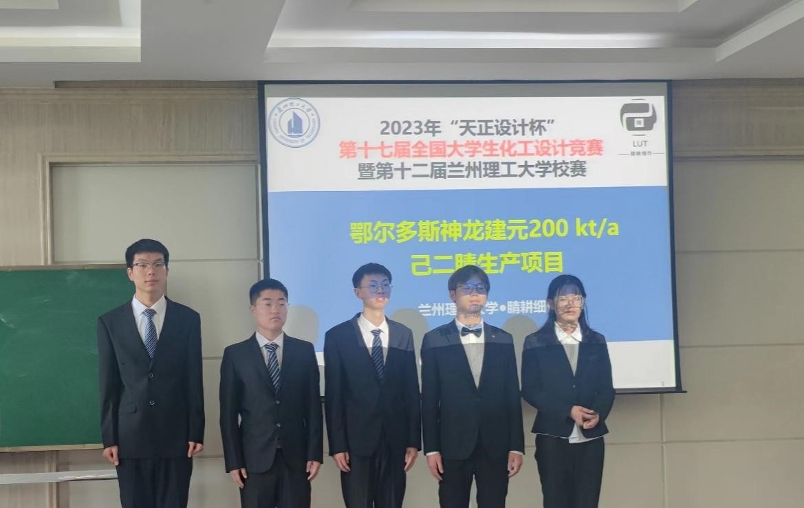 现场答辩由化工系主任李宁主持,化工系专业教师任评委。参赛小组成员逐一上台向评委老师介绍设计作品,并紧紧围绕己二腈生产的流程模拟、图纸设计、设备设计以及经济分析等方面展开论述。经过一上午的激烈角逐,“腈耕细作”参赛队获得一等奖,“学贯古腈”和“励腈图治”两支参赛队获得二等奖,“金腈百炼”、“精益求腈”和“炼腈小分队”三支参赛队伍获得三等奖。部分获奖队伍后续将代表学校参加甘肃省第三届大学生化工设计竞赛和第十七届全国大学生化工设计竞赛西北赛区竞赛。(撰稿:朱建芳;终审:任鹏)