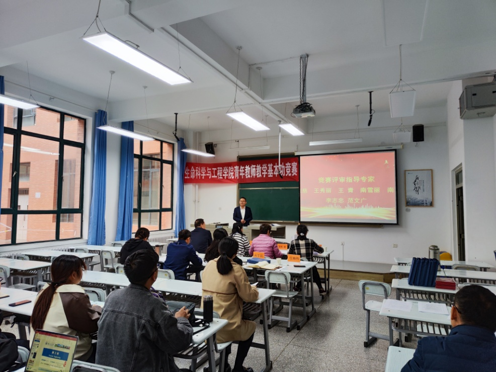 为进一步加强教学方法交流、夯实青年教师教学基本功、全面提升青年教师教学水平、促进特色课程建设,10月11日生命科学与工程学院青年教师教学基本功竞赛选拔赛在彭家坪校区蔚云楼110教室举行。特聘学校教学名师、竞赛获奖教师袁桂慈教授、王秀丽教授、王青教授、李志忠教授、南军虎副教授、南雪丽副教授、范文广副教授担任此次比赛评委,学院院长伍国强、青年教师参加了此次竞赛活动。此次比赛由生命科学与工程学院副院长任海伟主持。