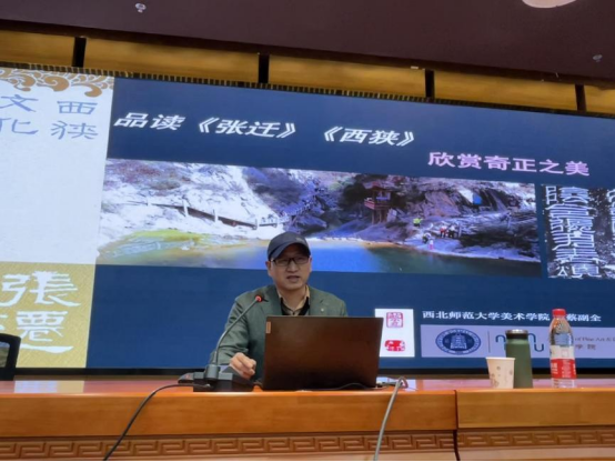 10月24日,西北师范大学美术学院蔡副全教授应邀在彭家坪校区图书馆109报告厅,作“品读《张迁》《西狭》,欣赏奇正之美。”的学术讲座。文学院汉语言文学专业本科生、汉语国际教育专业研究生、国学会及墨研月书法协会的100余人参加讲座,文学院副院长魏琳教授主持讲座。
