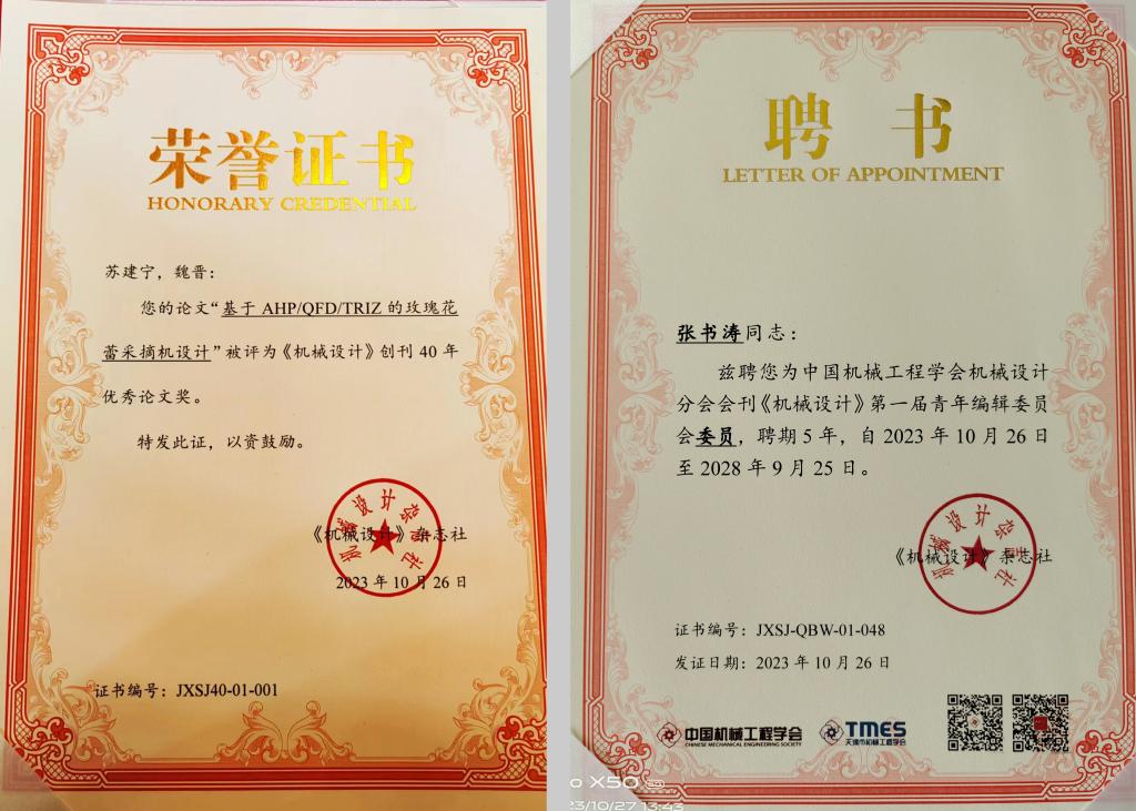 10月25日-27日,由中国创新设计产业战略联盟、中国机械工程学会、天津市科学技术协会指导,中国机械工程学会工业设计分会、天津市设计学学会等主办的2023中国工业设计工程大会在天津市召开。我校设计艺术学院工业设计系部分教师应邀参会,苏建宁教授荣获“优秀论文奖”,并应邀作主题报告,张书涛教授受聘《机械设计》第一届青年编辑委员会委员。