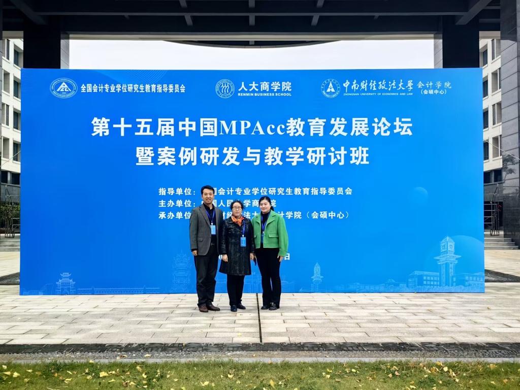 11月11日至12日,由全国会计专业学位研究生教育指导委员会、中国人民大学商学院主办,中南财经政法大学会计学院(会硕中心)承办的第十五届中国MPAcc教育发展论坛暨案例研发与教学研讨会议在湖北武汉举行,我校经济管理学院王翠琳教授、张宸副教授、孙蕊副教授参会。