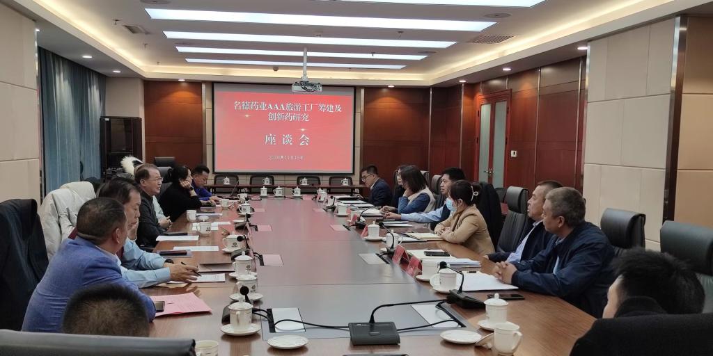 11月15日下午,兰州名德药业有限公司(简称“名德药业”)“AAA旅游工厂筹建及创新药研究”座谈会在兰州高新区科技孵化大厦5号会议室举行。高新区管委会副主任李娜、党政办主任高骞、经科局局长高汇学、招商服务局局长施玲,羊优品控股(西安)董事长杜春祥、总经理雷聪玲,广州澳邦医药总经理李一洪、浙江维康药业副总经理熊赓、重庆怡德农科总经理周树财、甘肃明珠矿业董事长许建等公司负责人,“藏系绵羊胎盘校企联合创新研究中心”主任、学院李志忠教授参会。会议由高新区党工委委员、管委会主任武永强主持。