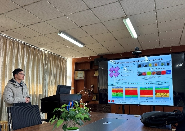 丁斌博士为师生作了题为“Development of Effcient and Stable Perovskite Solar Cells and Modules”的学术报告。会后,与会师生和丁斌博士就大面积、高质量钙铁矿薄膜的制备和钙钛矿太阳能电池中存在的难题以及未来的发展方向与现场师生进行深入讨论和详细交流。(撰稿:周宏伟;审核:石玗)
