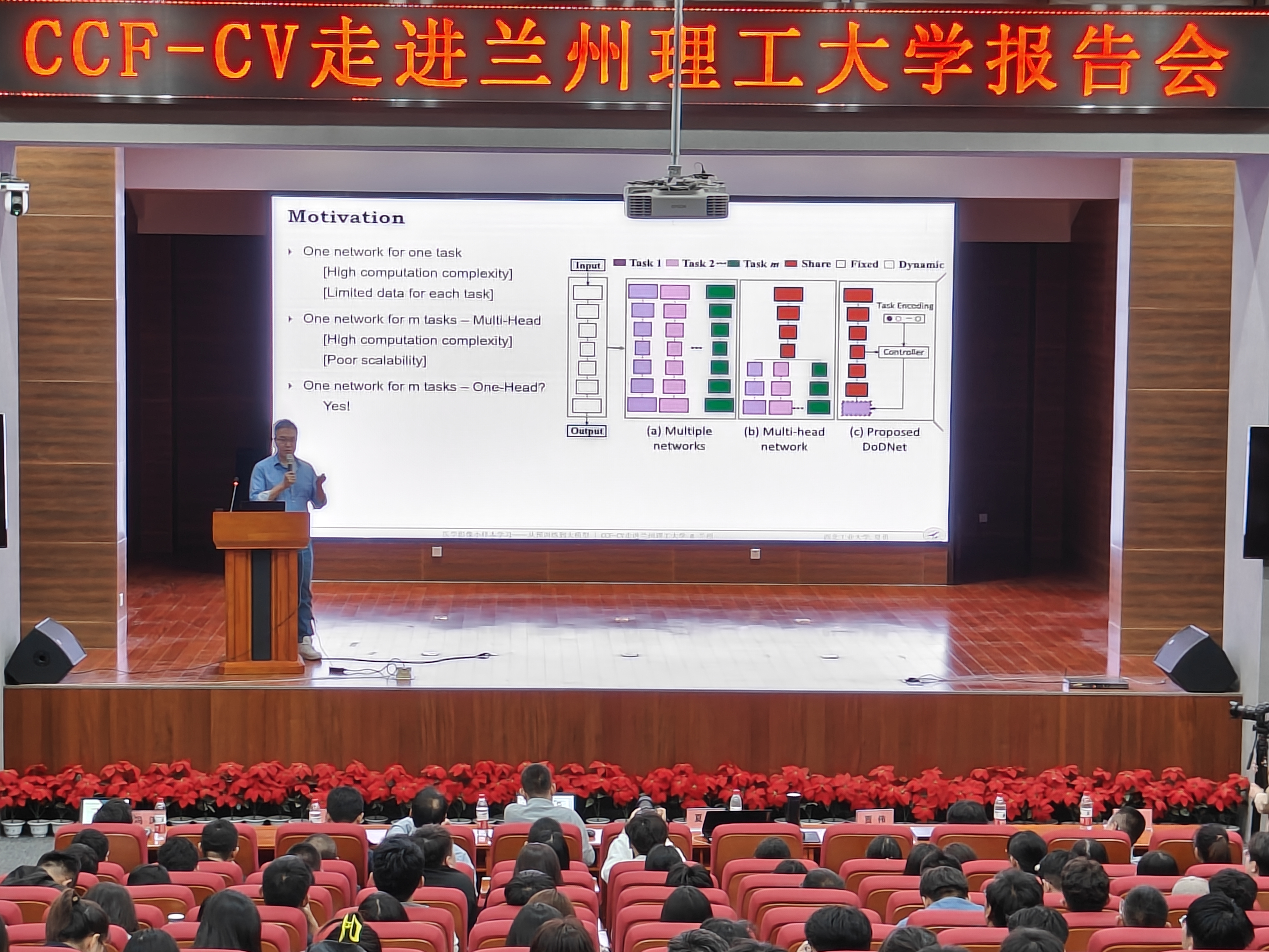 4月17日下午,由中国计算机学会计算机视觉专委会(CCF-CV)主办,兰州理工大学承办的第136期CCF-CV走进高校系列报告会——“智能视觉感知与计算”在兰州理工大学图书馆109报告厅举行。本期报告会邀请四位国家级青年人才、领域知名学者做特邀报告,分别来自南京大学的吴建鑫教授、合肥工业大学的贾伟教授、西北工业大学的夏勇教授、中国科学院计算技术研究所的王瑞平研究员。兰州理工大学计算机与通信学院院长冯涛、副院长李晓旭担任本次报告会的执行主席。