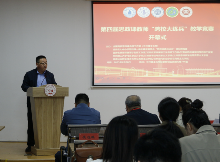 为深入贯彻落实习近平总书记在学校思想政治理论课教师座谈会上的讲话精神,将新时代伟大变革全面融入思政课教学,守正创新推进思政课建设。4月26日,第四届思政课教师“跨校大练兵”教学竞赛在我校彭家坪校区文理楼716报告厅举行。本次竞赛由全国高校思政课名师工作室(兰州理工大学)、甘肃省大中小学思政课一体化建设委员会“思想道德与法治”课分教指委等单位联合举办,共有来自5所高校的27名教师参赛。