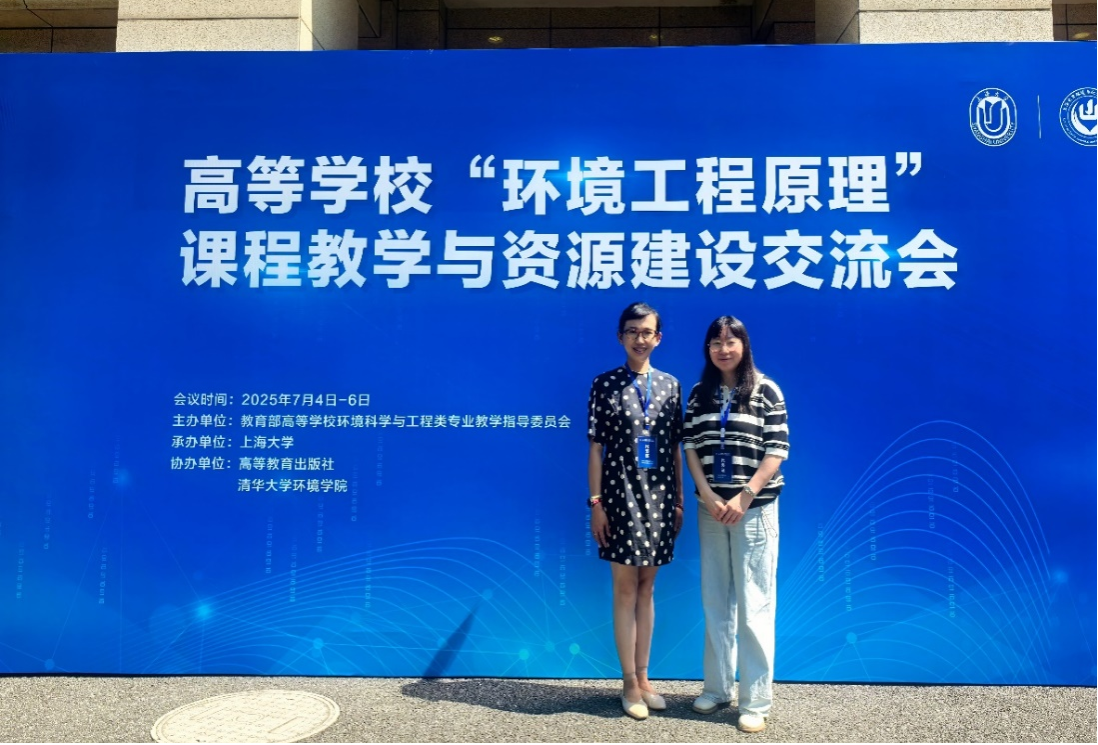 为推动环境工程领域教育教学改革与创新,加强高校间课程建设经验交流,由教育部高等学校环境科学与工程类专业教学指导委员会主办,上海大学承办的“高等学校'环境工程原理'课程教学与资源建设交流会”于7月5日在上海召开。来自全国40余所高校的近百名环境工程领域专家、一线教师及教育管理者齐聚一堂,围绕课程知识体系革新、教学模式创新及教学资源优化等议题展开深入研讨。我校环境科学与工程学科带头人赵霞、环境工程专业教师张婷参加会议。