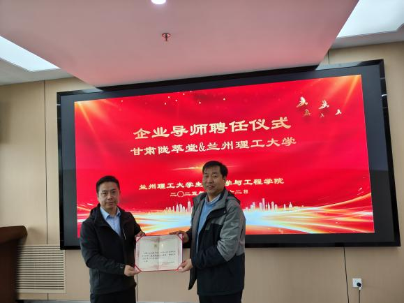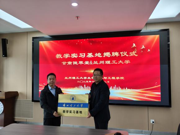 任海伟对王小伟一行的到来表示欢迎,并就学院的基本情况进行了详细介绍,表达了生命科学与工程学院与陇萃堂在未来进行校企合作的意愿。王小伟向与会人员介绍了陇萃堂公司的发展历史,并就公司未来在牛肉面产业的发展规划进行了详细的阐述。同时,他表达了陇萃堂对与生命学院在兰州特色产品的研发与赋值方面进行长期、深度合作的期盼。双方在牛肉面全产业链发展、特色产品开发、甜胚营养功能赋值、科研项目申报和高新人才培养方面达成了一致。双方签订了教学实习基地协议并完成教学实习基地揭牌仪式。生命科学与工程学院向王小伟副总裁和姜交龙工程师颁发了企业导师聘书。