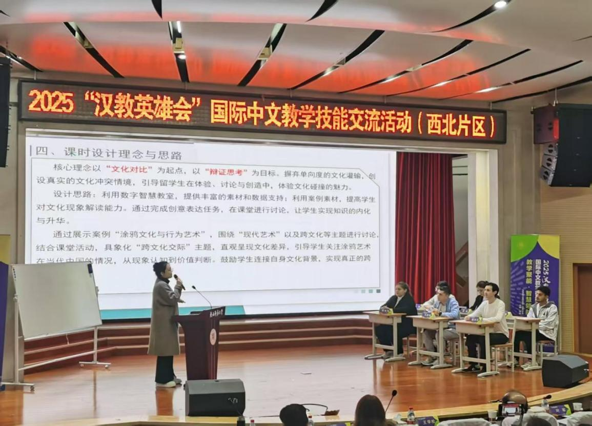 本次活动西北片区16所高校派出30余支队伍参赛。文学院团队教学设计方案阐述和教学展示主题为“跨文化交际与当代中国国情教学——涂鸦文化与行为艺术”。团队立足中国文化与国情,以中国“涂鸦文化”的现状和发展为切口,通过精心设计的课堂活动,鼓励国际中文学习者结合自身文化背景,探索古今中外有关涂鸦文化以及行为艺术的事例及其联系,从而达成跨文化的沟通、理解和评价。在教学交流讨论环节,评议专家对案例的创新性、典型性和达成度给予了充分肯定和高度评价。