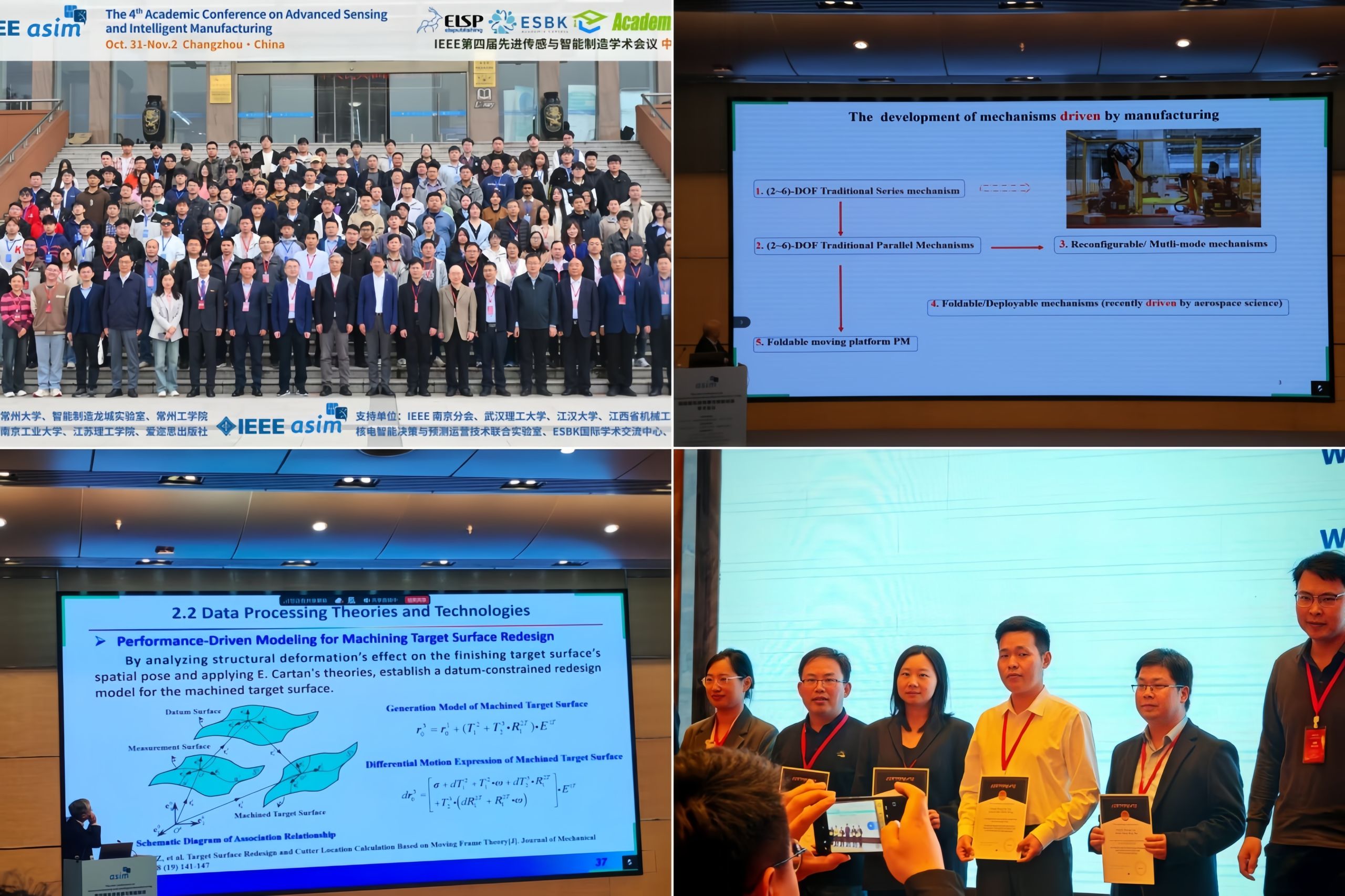 10月31日至11月2日,第四届先进传感与智能制造国际学术会议(ASIM 2025)在中国常州举办。自动化与电气工程学院荣获“最佳组织奖”“最佳学术论文奖”;卢延荣老师荣获“学术先锋奖”。本论坛聚焦学术前沿,为众多学者在复杂系统分析、分布式预测控制、数字孪生及数据挖掘等热点研究方向提供了深度交流与思想碰撞的平台,吸引了众多学者的关注,并获得与会专家的一致好评。