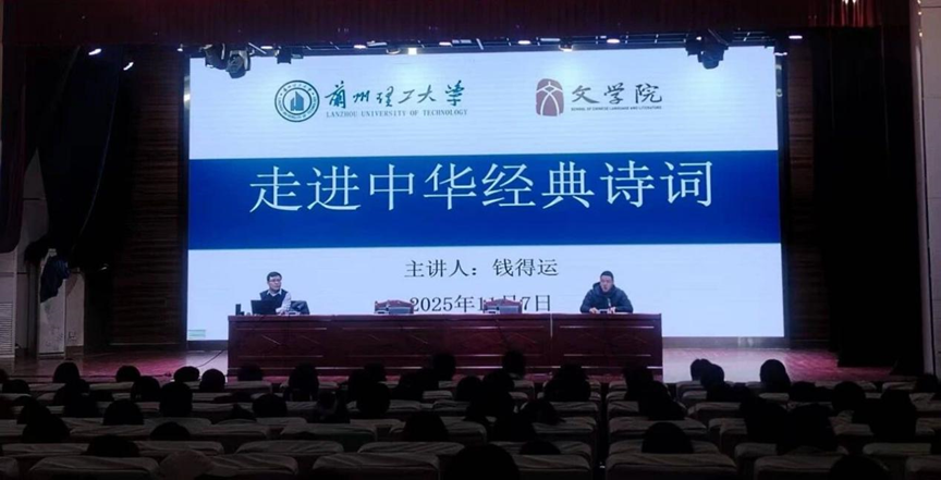 为加强高校与普通高中之间的合作交流,弘扬中华优秀传统文化,11月7日,文学院副教授钱得运走进永登县第六中学,开展“教授进校园”系列活动——中华经典诗词专题讲座,与广大高中学子进行中华优秀传统文化的讲解与交流。1400多名学生参加活动,永登六中校长王永基、副校长薛红兰、张喜俊出席讲座。