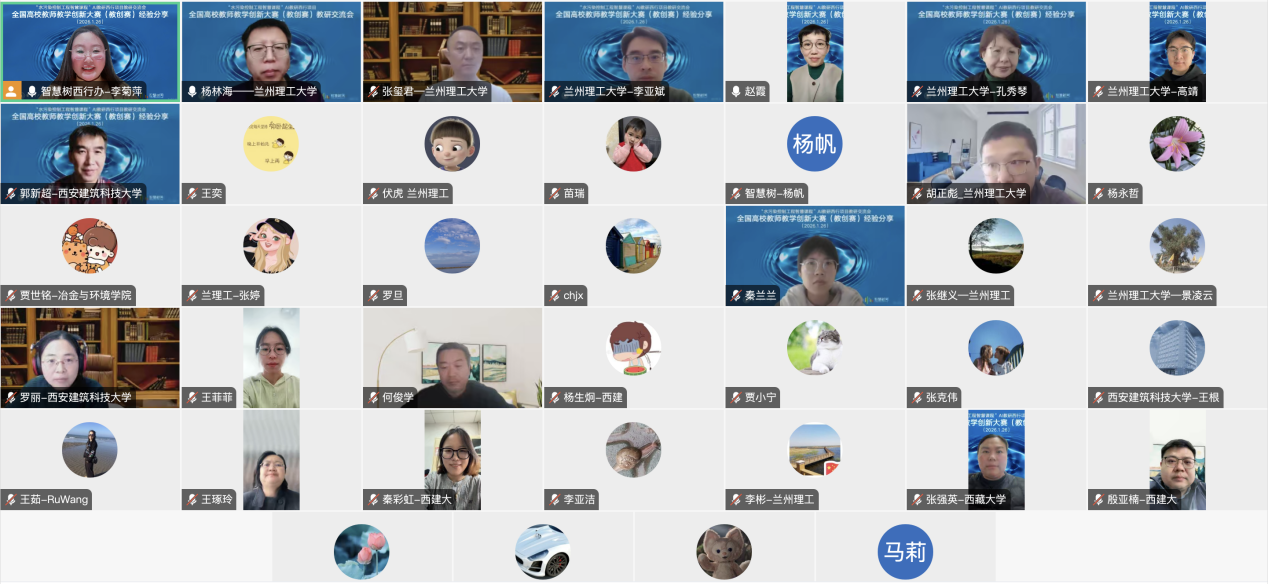 1月26日上午,冶金与环境学院线上召开了全国高校教师教学创新大赛经验分享暨“水污染控制工程智慧课程”AI教研西行项目教研交流会。会议邀请我校第五届高校教师教学创新大赛产教融合赛道全国二等奖获得者张玺君教授作专题分享,来自西安建筑科技大学、西藏大学及学院的50余名教师参加分享会。会议由学院副院长杨林海主持。