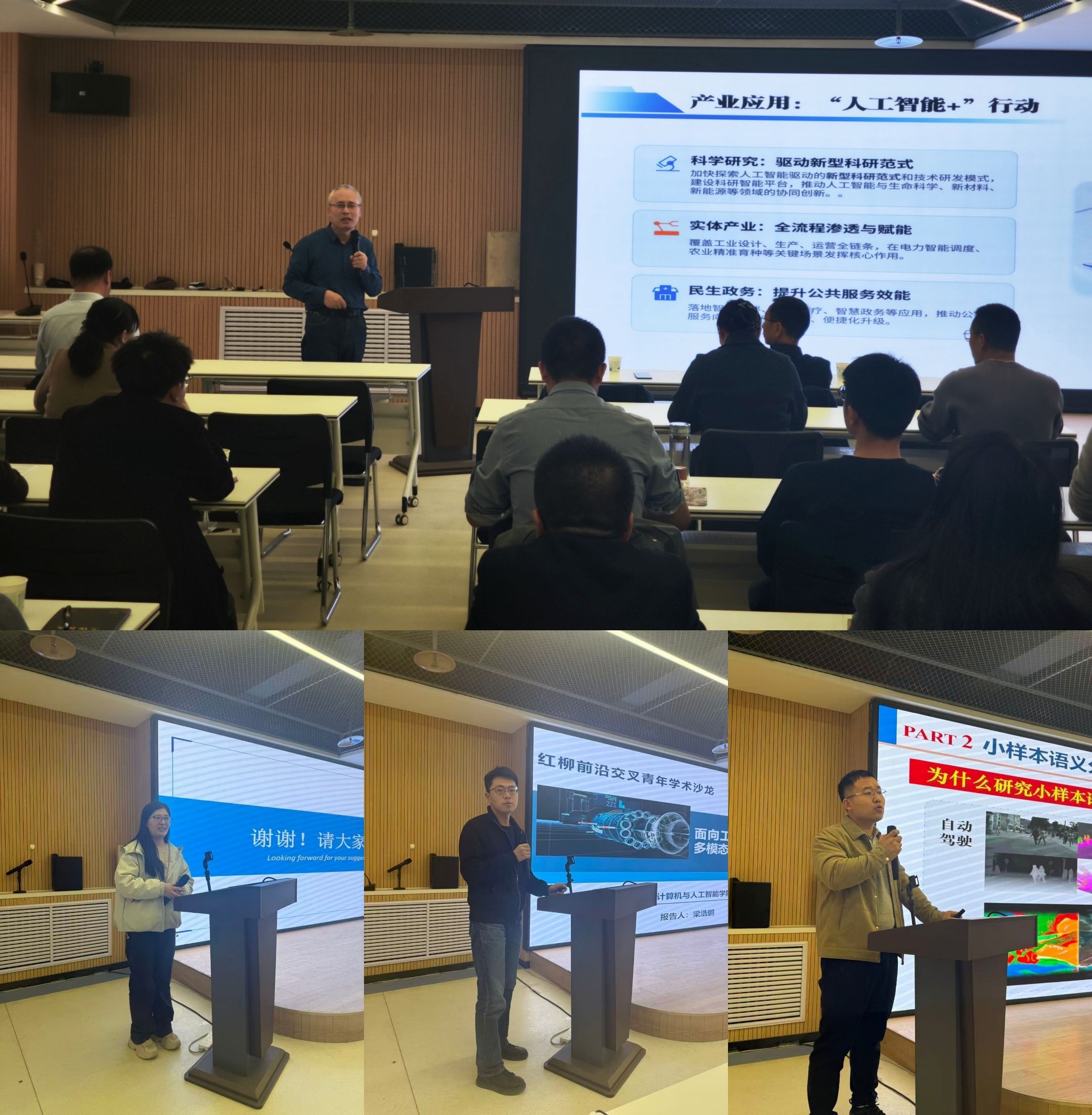 2025年、2026年青年教师学科交叉研究培育项目负责人胡弟弟、梁浩鹏、常兆斌三位博士,分别就各自的科研方向与研究进展作了报告。胡弟弟以《基于深度学习的北极流域径流中长期预测》为题,分享了机器学习方法在北极流域径流预测中的应用与进展;梁浩鹏以《面向工业旋转机械健康维护的多模态故障诊断大模型研究》为题,分享了AIGC驱动工业数据生成、多模态大模型在旋转设备故障诊断与预测维护中的研究成果;常兆斌以《事先可解释性深度学习及其在小样本语义分割中的应用研究》为题,分享了可解释性深度学习的技术突破与应用前景。