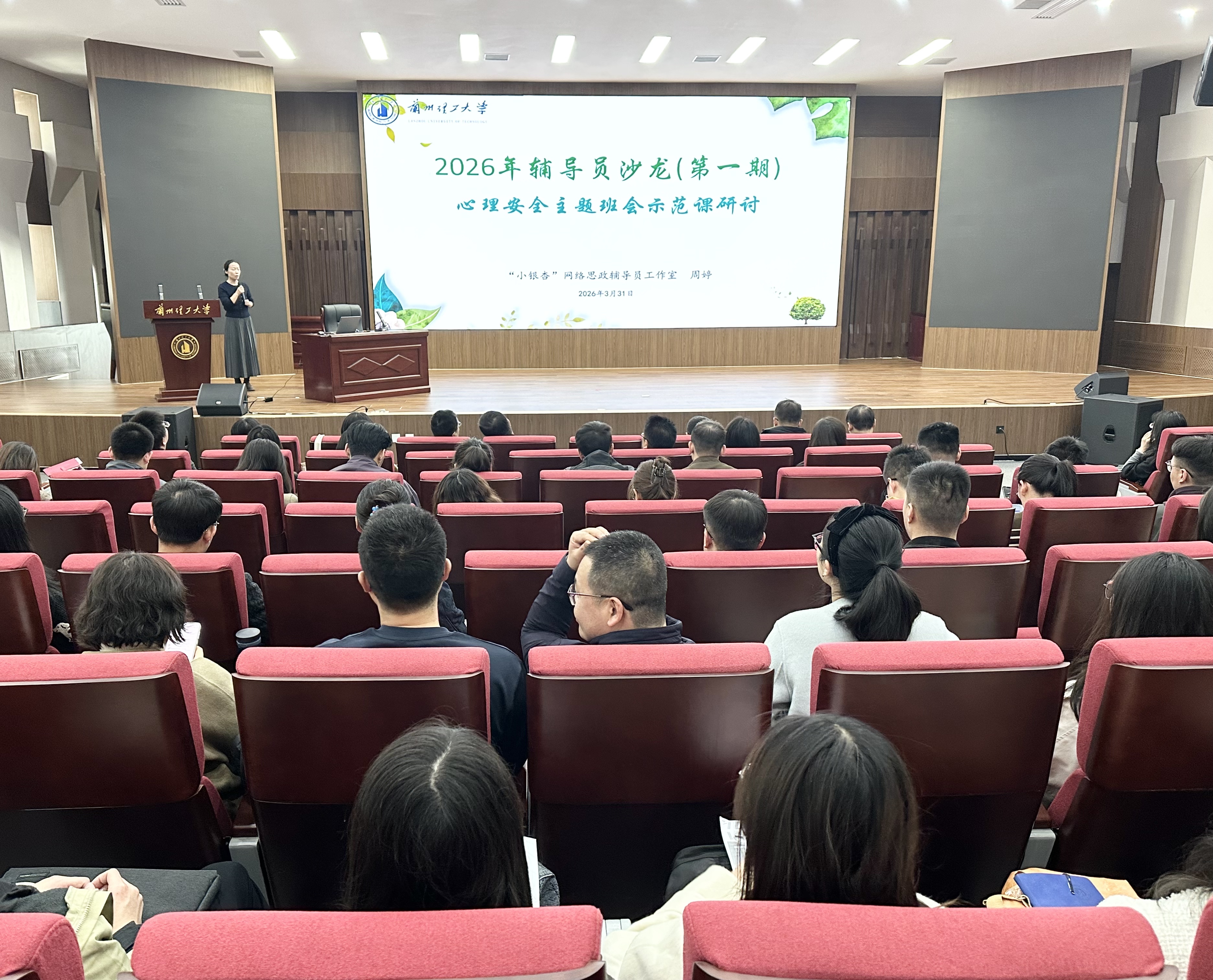 3月31日上午,学生处举办2026年第一期辅导员沙龙,开展心理安全主题班会示范课活动。本次活动由学校“小银杏”网络思政辅导员工作室主持人周婷老师主讲,全校辅导员参加。