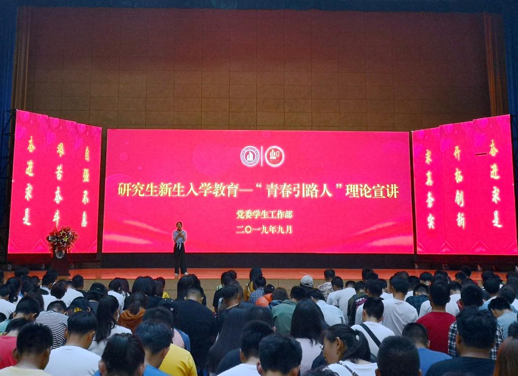 9月3日,学工部组织“青春引路人”理论宣讲团优秀讲师于在兰工坪校区体育馆开展了2019级研究生新生坚定理想信念,增强担当本领理论宣讲第一课。