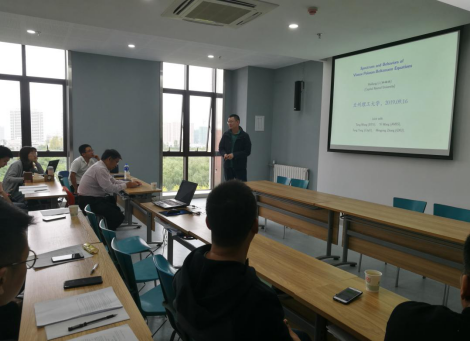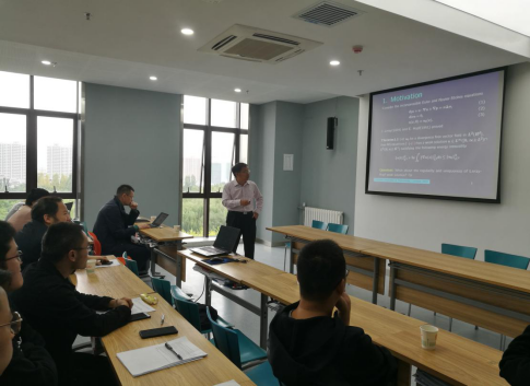王术教授从宏观上介绍了流体力学中的一些物理现象和数学刻画,讲述了三维Navier-Stokes方程的由来和研究现状,分别从可压和不可压两个方面分析了当前NS方程研究中面临的问题,并着重讲述了他们团队近年来在球面坐标系下对该系统研究的新进展。李海梁教授则是从微观的角度介绍了流体力学中Vlasov-Poisson- Boltzmann系统的数学构建,研究以及发展过程,同时分享了他们团队在谱结构,时空行为以及稳定性等方面取得的新成果。