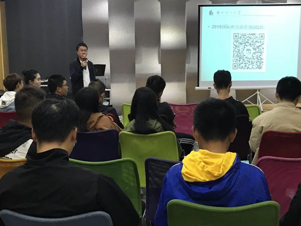 王亚兵老师主讲了我校“2+2” 国际班项目的基本情况王亚兵老师从转学流程、学费情况、国外合作大学的办学实力等方面详细解读‘2+2’项目,鼓励同学们充分利用学校搭建的平台,结合自己兴趣所长规划人生,勇敢逐梦。