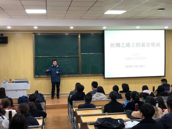 10月30日下午,汪小洋教授作题为《中国丝绸之路上的墓室壁画》的学术讲座。报告围绕“世界范围内中国传统艺术中最具有不可比性的艺术形式”“中国本土范围内墓室壁画最集中的地区与图像体系”“丝绸之路上墓室壁画的特别贡献”“世界墓室壁画遗存的分布特征”四个话题展开。整场报告图文并茂,在场师生沉浸在一个精彩纷呈的图画世界中。