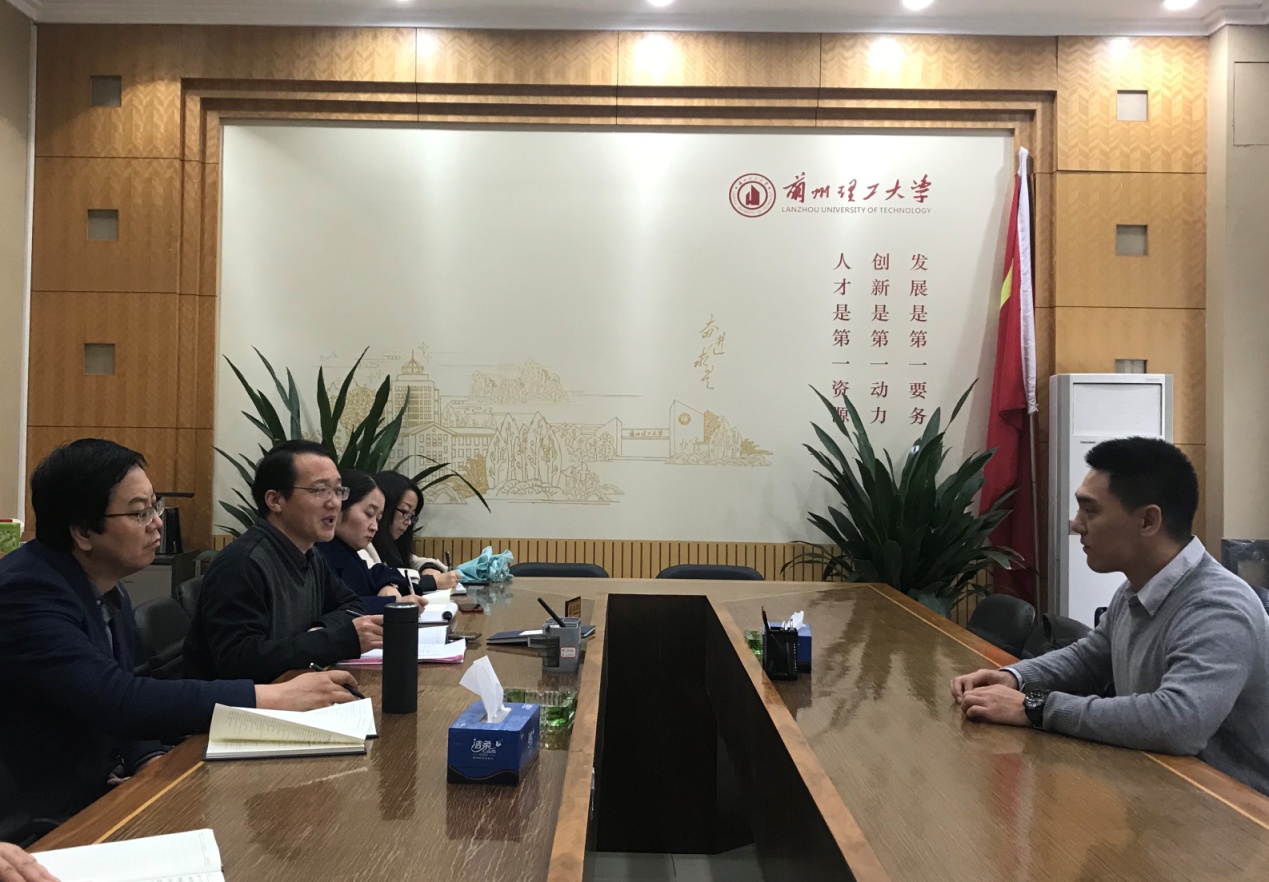 国际合作处副处长赵付青向杨懿磊介绍了学校历史、学科、专业、教学、科研、暑期海外实践、学生交换及科研合作等内容。
