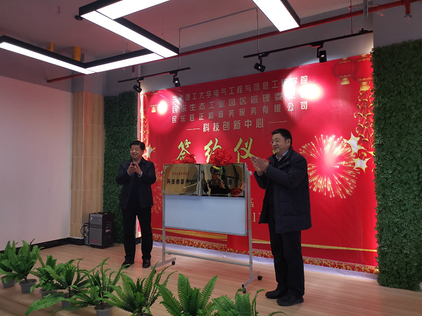 1月17日,电信学院、民乐生态工业园区管委会、民乐县正和商务服务有限公司联合建设民乐生态工业园科技创新中心签约仪式在民乐生态工业园成功举行。民乐生态工业园管委会副主任项培祥、民乐县科技局局长张标昌、副局长刘垠、兰州理工大学电信学院党委书记杨新华、副院长陈伟、科技处副处长张飞、自动化系主任王志文、民乐县正和中小企业服务中心全体人员参加了签约仪式。