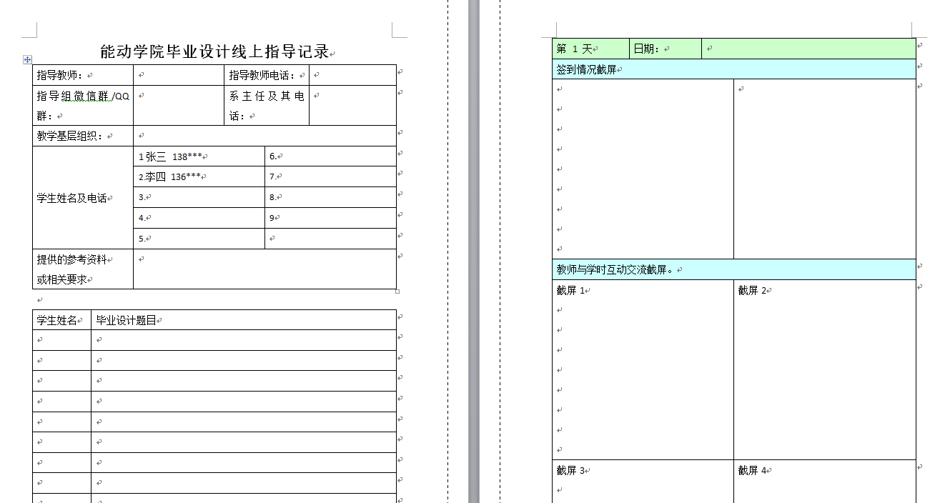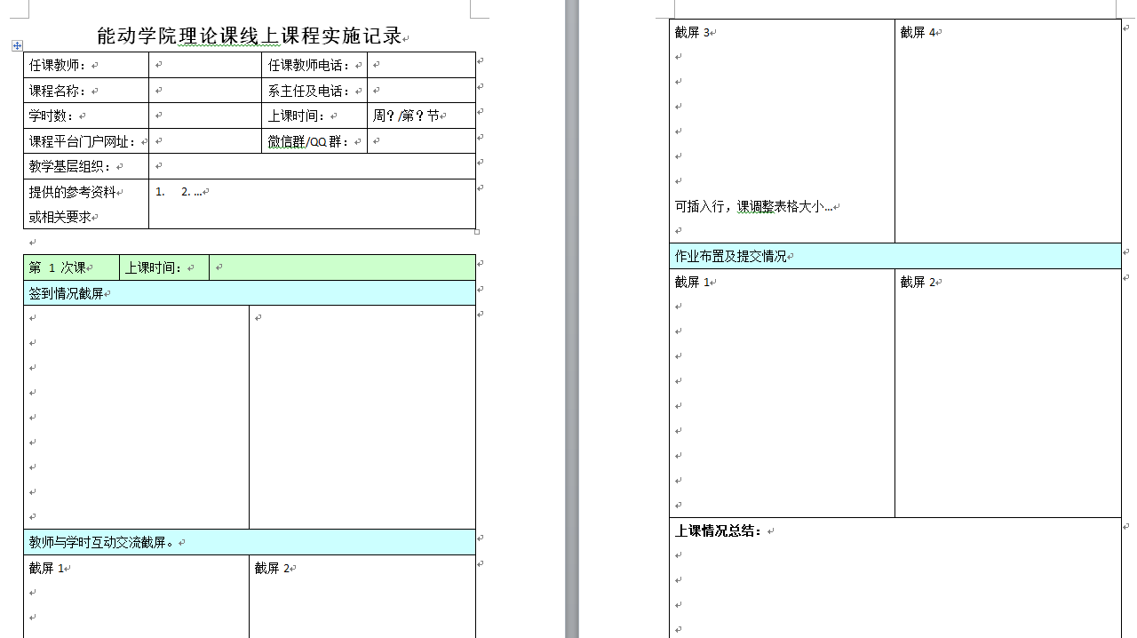 《能动学院线上理论课实施记录》《能动学院毕业设计线上指导记录》