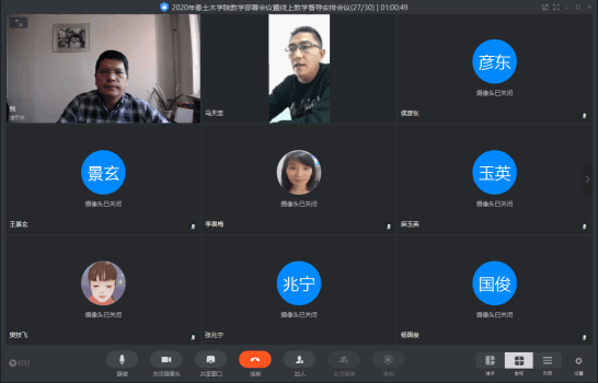 2月28日下午,学院召开了2020年春季学期第二次教学工作视频会议。参加会议的有学院党委班子成员,教学基层组织主任、教学办和学生办老师以及线上教学督导组老师,会议由学院分管本科教学工作的副院长马天忠主持。