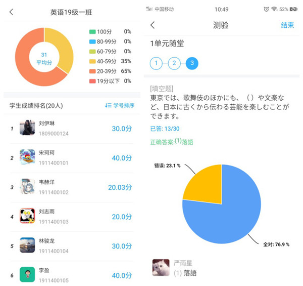 学生随堂测验情况截图