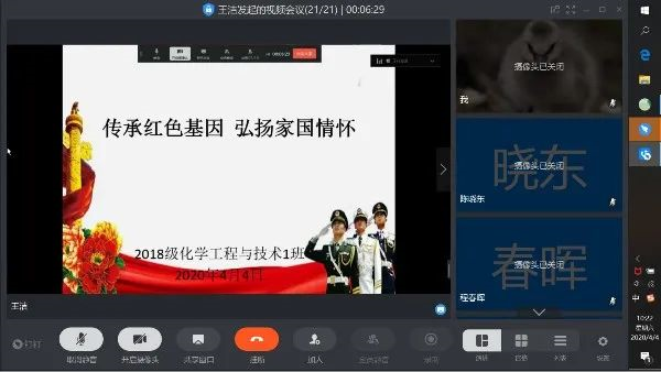 为铭记历史缅怀先烈,表达对抗击新冠肺炎疫情斗争牺牲烈士和逝世同胞的深切哀悼,4月4日,兰州理工大学研究生各班级、党支部开展“云端寄哀思 弘扬爱国情”线上主题班会、主题党日活动。上午10点整,全体研究生辅导员、研究生通过云端在线寄托哀思。当天,各班级、党支部分别组织召开主题班会、主题党日活动。