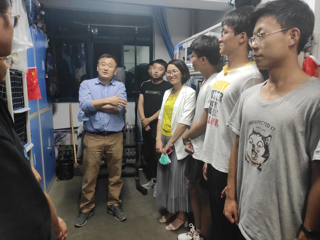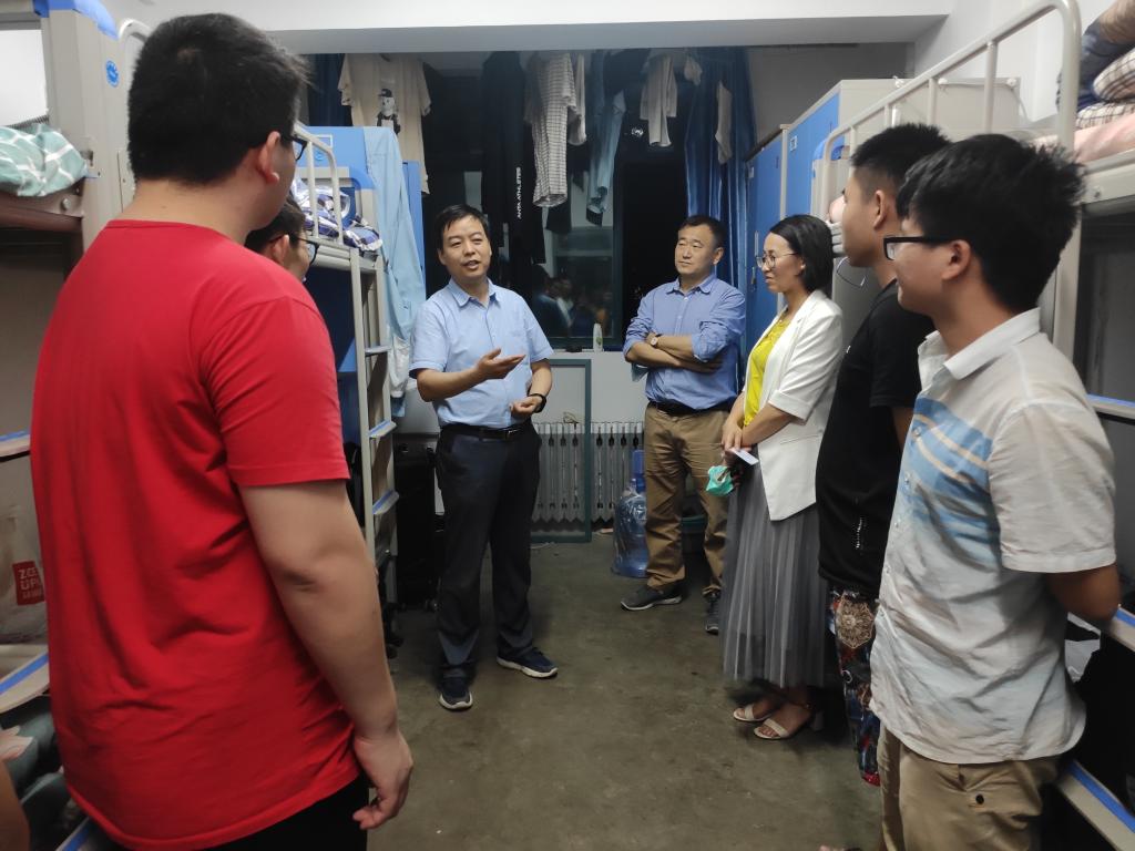 6月18日晚,学校党委常委、组织部部长王佰成走访了材料学院联系班级的学生宿舍,材料学院院长李文生等学院领导同行。
