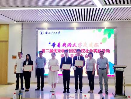 6月27日下午,由教务处、共青团兰州理工大学委员会主办,学校招生宣传志愿者协会承办的“带着我的大学走近你”第二届优秀学子回访母校社会实践活动评优表彰大会在彭家坪校区红柳创客梦工厂举行。