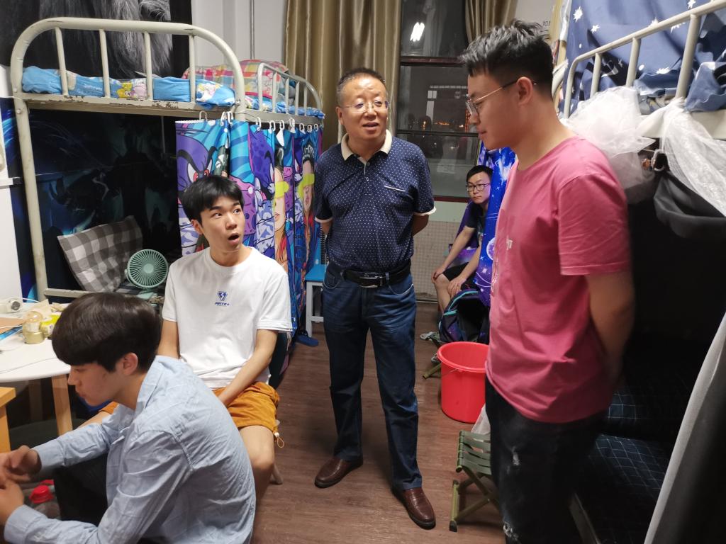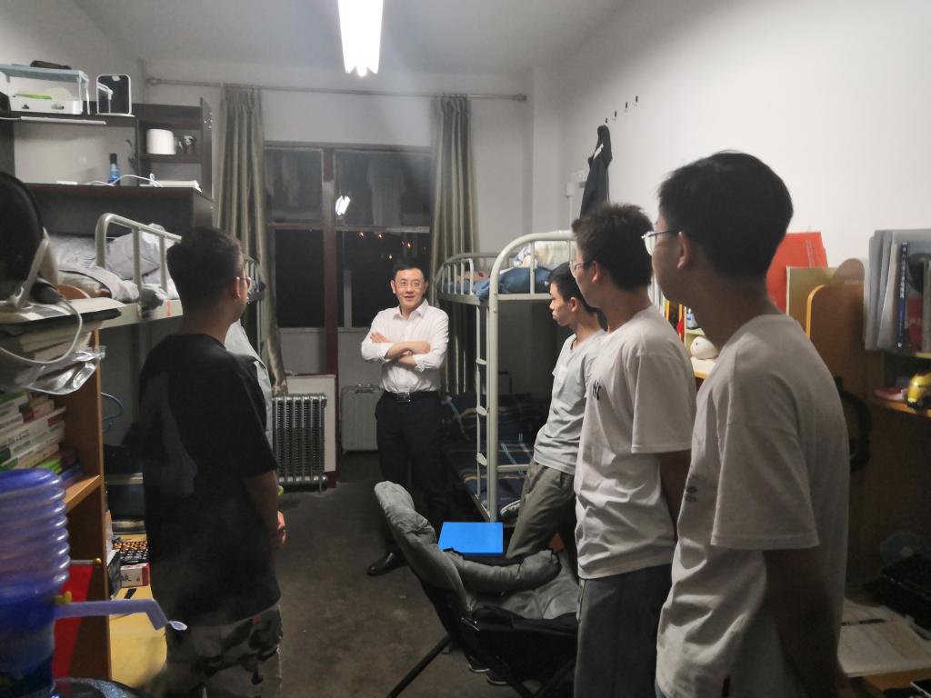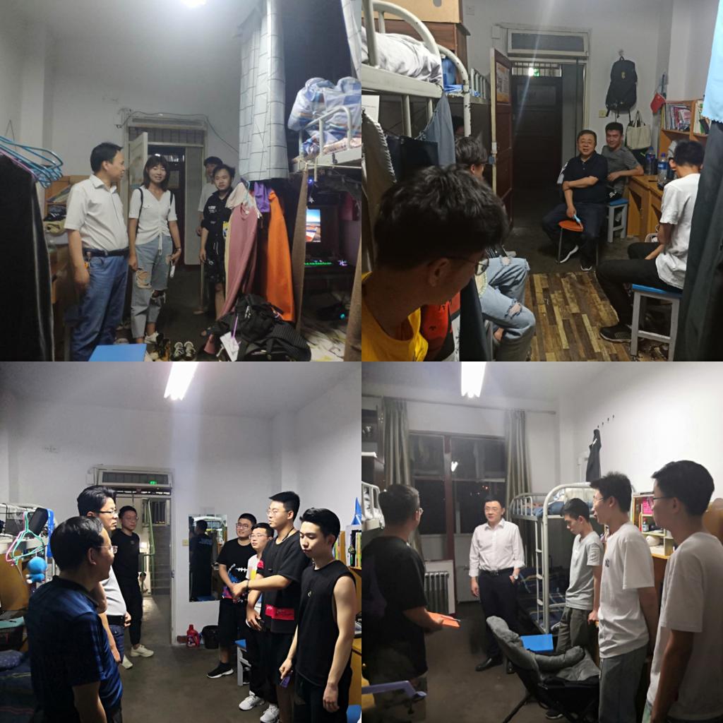 7月8日晚,学校副校长胡洁、研究生院院长苏建宁、饮食服务中心主任崔强、兰石研究院杨瑞副院长,学院党委书记王正民,来到所联系班级宿舍,与同学们拉家常,话成长。