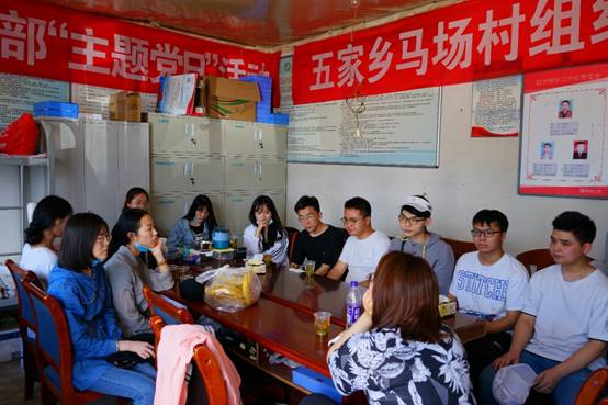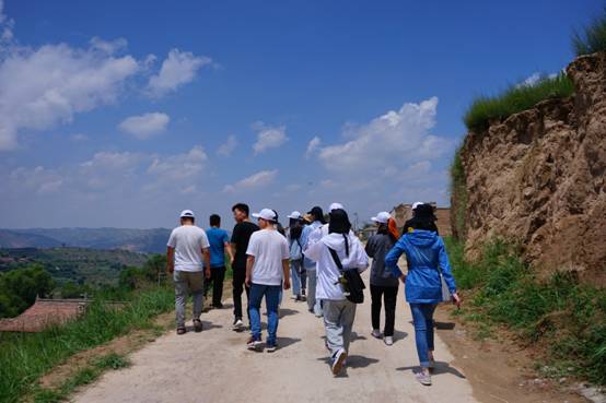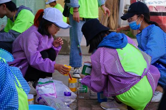 到了马场村,放下行李,队员们就迫不及待地请驻村干部带领大家熟悉村里的情况,了解需要绘制的墙面数量、地点,查看墙面的基础状况。一路上,队员们不仅被马场村美丽的自然环境深深吸引,还在驻村干部的介绍下,与村里的村民们打招呼。调研过后,队员们就整体绘画方案进行了商讨,确定了分组和草图。