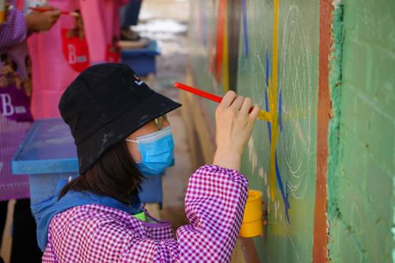 为了不影响小生们上课,希望他们周一到校后能看到一个不一样的学校,给孩子们一个惊喜,队员们在18、19日周末两天先绘制了马场小学校舍的墙面。队员们不仅给马场小学的学生们精心设计了一面拍照打卡“网红墙”,还根据校舍原有的颜色,搭配了房子、树叶、花草等图案,使学校的墙面变得丰富多彩。