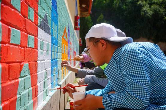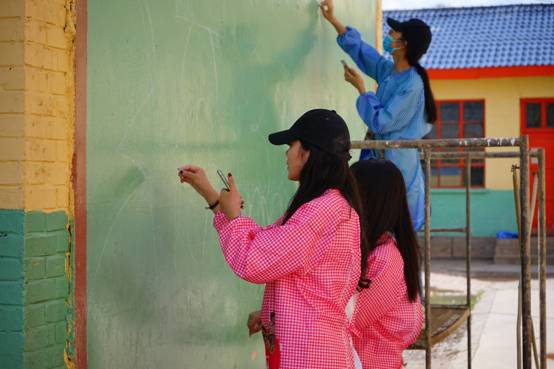 为助力全面决胜脱贫攻坚,继续弘扬疫情防控期间广大“90后”“00后”展现出的国家情怀与担当作为精神,7月17日,兰州理工大学设计艺术学院乐翼青年社会实践团赴甘肃省临夏回族自治州东乡族自治县马场村开展暑期社会实践活动,为马场村绘制“美丽新农村”墙面,用墙绘装饰马场小学校舍。