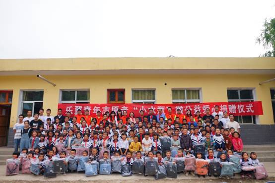 21日,实践队队员代表乐翼青年志愿者服务队向马场小学的142名学生捐赠了142个书包。书包的经费来自乐翼青年志愿者服务队发起的“小水瓶”微公益项目。志愿者们通过捡空水瓶换取经费的方式,筹集项目基金,然后用基金购买图书、文具等捐赠给贫困地区的学生。