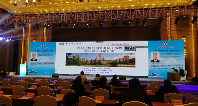 论坛围绕岩土、防灾、结构、桥梁、市政、道铁、暖通等土木工程研究领域,安排了院士、专家报告等160余场学术报告及青年学者沙龙,王文达受邀做大会报告,王正振博士做青年学者沙龙报告。王文达以“内配型钢的钢管混凝土构件侧向撞击性能研究”为题,从“内配型钢的钢管混凝土构件的撞击试验研究”和“内配型钢的钢管混凝土构件的侧向撞击性能有限元分析”两部分对报告进行详细叙述;王正振以“厚垫层砂桩复合地基现场实测研究”为题,针对温州瓯江北口大桥及五峰山长江大桥锚碇沉井厚垫层砂桩复合地基现场实测情况展开报告。会场氛围和谐融洽,为各位同行提供了深入交流的平台。