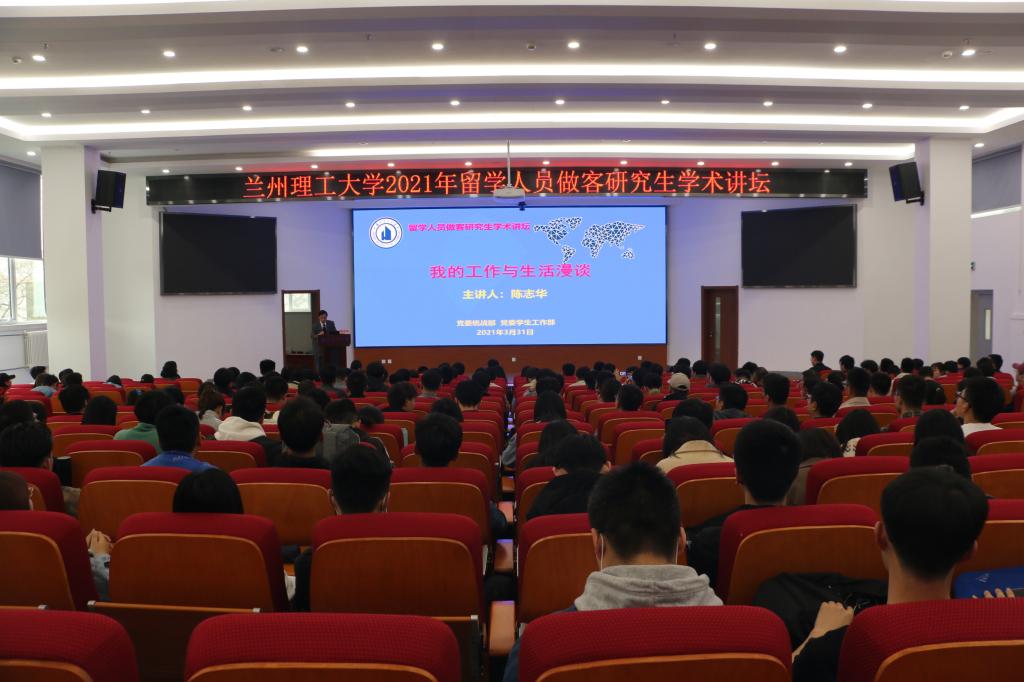 3月31日下午,学校在兰工坪校区图书馆二楼报告厅举办2021年春季学期留学人员做客研究生讲坛活动,由党委统战部和党委学生工作部联合举办。本次讲坛邀请留学人员、我校党委常委、副校长、陈志华教授做《我的工作与生活漫谈》的主题报告。统战部常务副部长田波、学生工作部部长孙伟国、副部长李荣华、统战部和研究生教育管理科老师、研究生辅导员及学院研究生代表共计300余人参加报告会。讲坛由孙伟国主持。