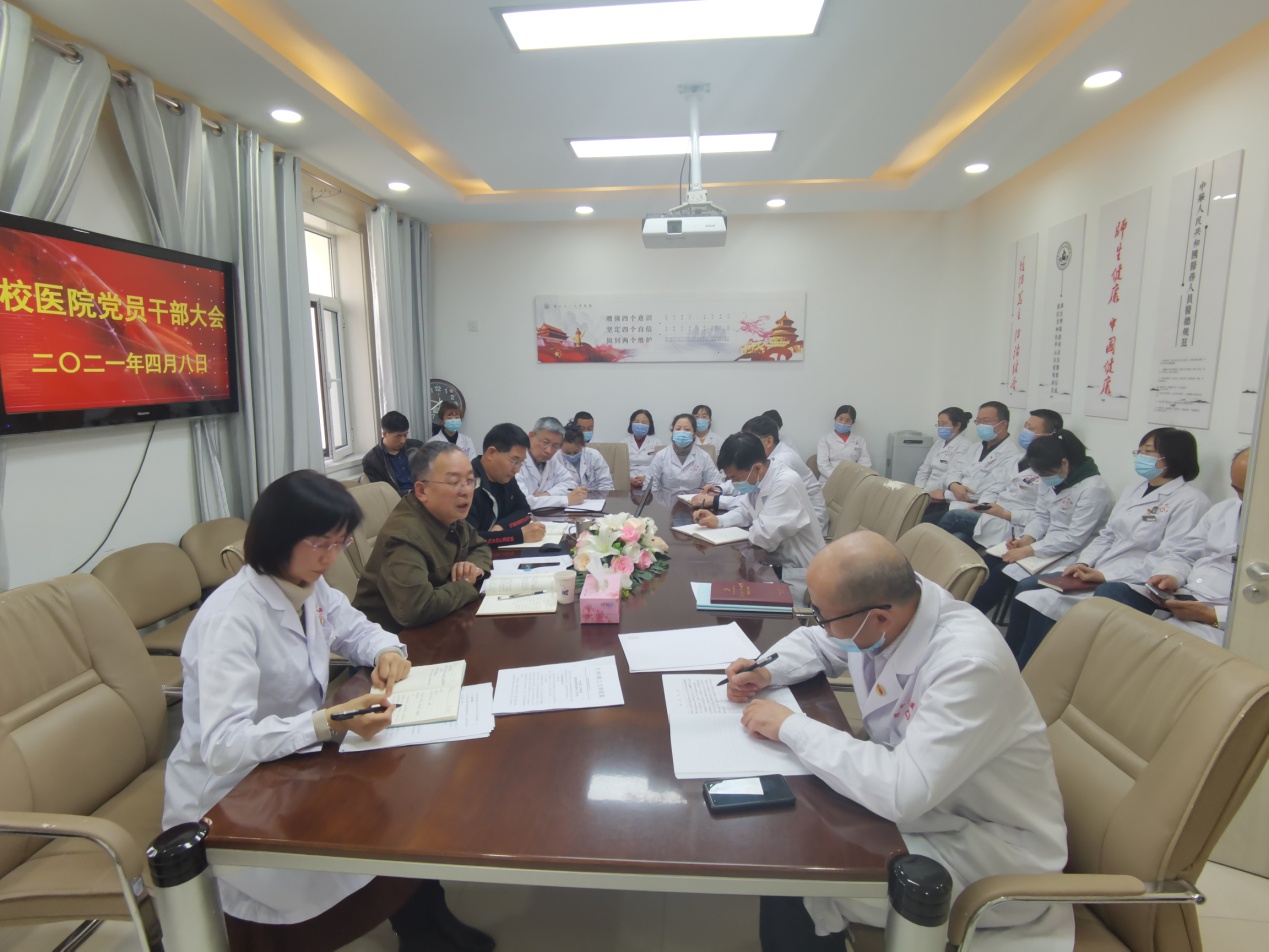 4月8日下午,校医院召开党员干部大会。学校党委常委、副校长宋琦,校医院全体党员、二级部门及业务科室负责人、工会委员及入党积极分子参加会议。会议由校医院直属党支部书记张思成主持。