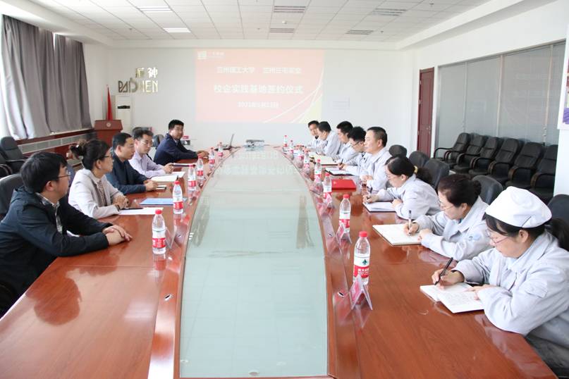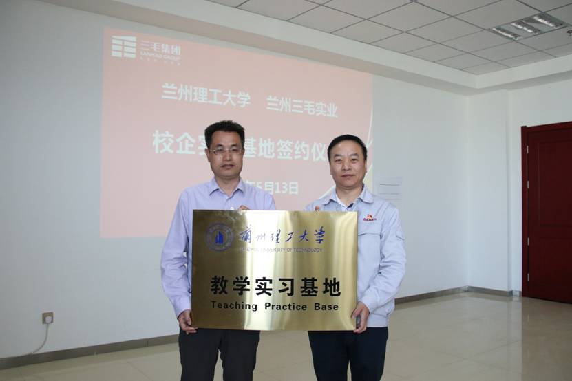 在签约仪式上,兰州三毛实业有限公司纪委书记郭红接详细介绍了公司的发展历史、营运情况与发展规划;石化学院副书记张飞龙对学院及环境工程系做了简单介绍,并就学生实习、科研合作、学生就业等方面相互交流了意见;新能源学院副书记牛磊从产学研的角度,希望兰州理工大学的科研成果能在兰州三毛实业有限公司落地,提高公司产品的附加值,降低公司的生产成本。双方一致认为,此次实习基地建立为相关专业学生的各类实习实训增加了一个良好的平台,也为后期校企合作奠定了良好的基础。