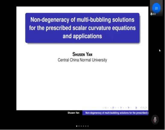 杨健夫教授,严树森教授及王荣年教授分别做了题为《Improved Sobolev inequalities and critical problems》、《Non-degeneracy of multi-bubbling solutions for the prescribed scalar curvature equations and applications》、《Theory of Invariant Manifolds for Infinite-dimensional Nonautonomous Dynamical Systems and Applications》的精彩学术报告。报告结束后,三位教授就与会师生提出的相关问题作了详细的解答,同时就共同关心的话题,如基金申报等问题进行了交流。通过此次学习交流,一方面让相关研究生了解了当前的学术前沿及热点,同时也加强了与同行之间的学术交流。